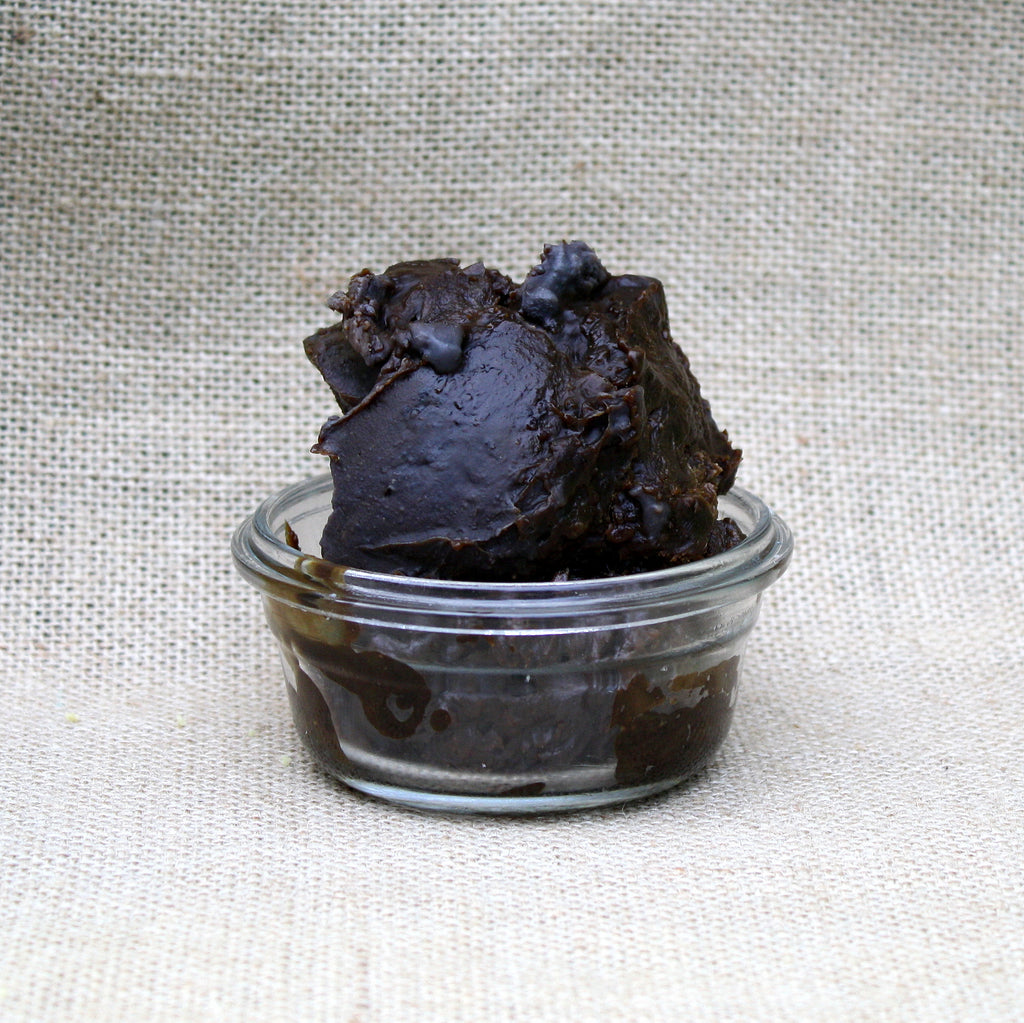 Being a very dark butter with intense scent, it sometimes is received with some resistance by my costumers, that is, before they completely fall in love with it. For its color it will transfer and stain light fabrics before fully absorbed.